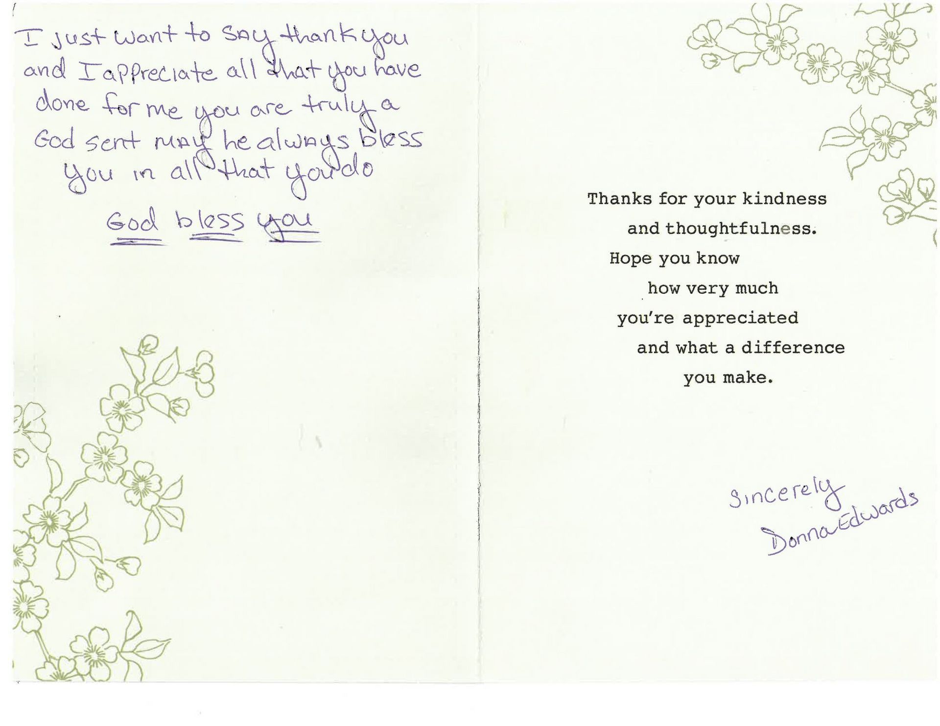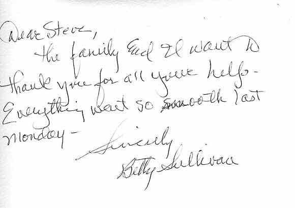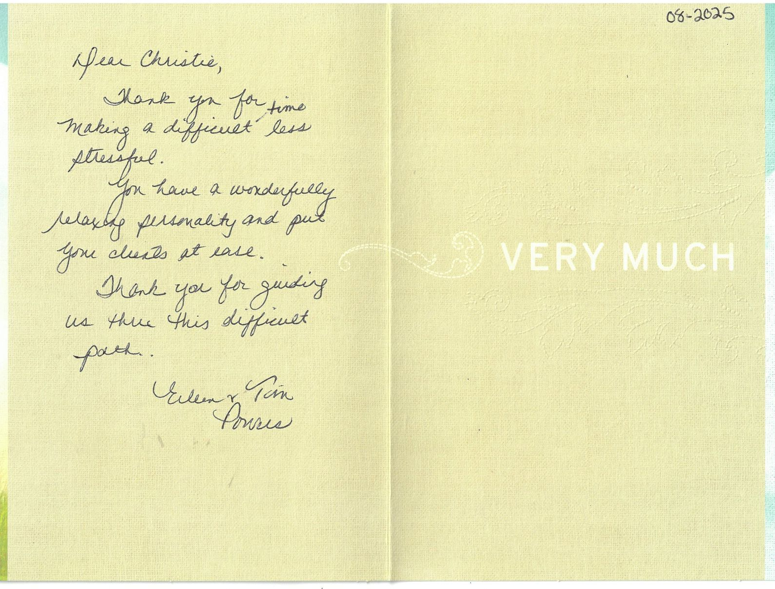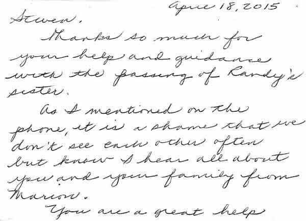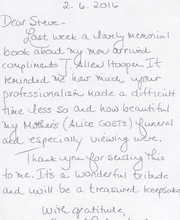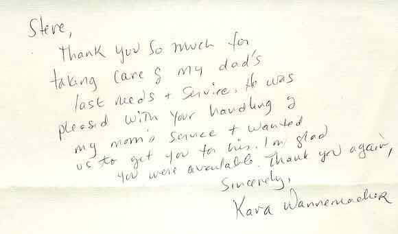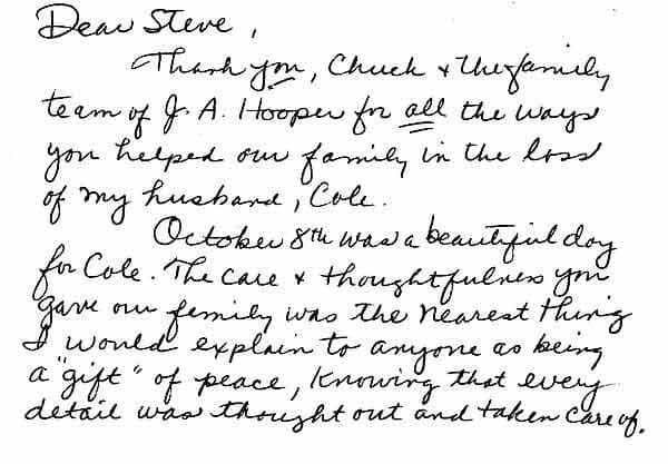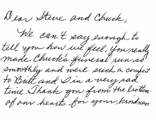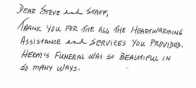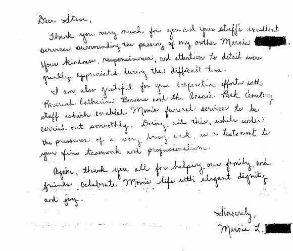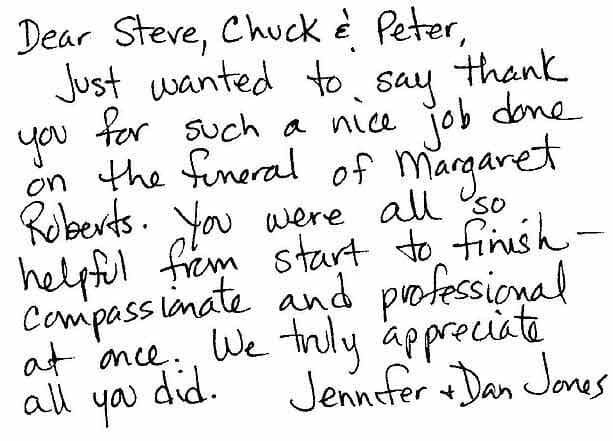 It is our greatest pleasure to hear from families we've served after the service is over. We receive many letters, cards and emails thanking us for our care and attention during their time of need and those words warm our hearts and affirm that we are truly here to serve.