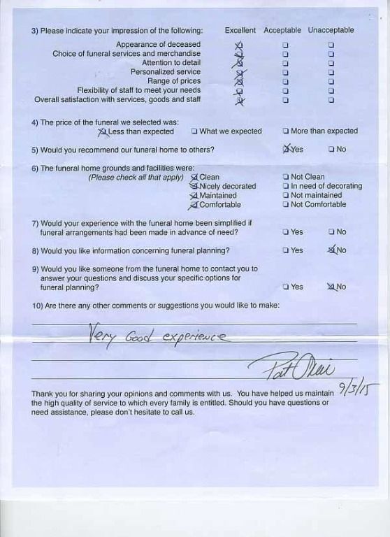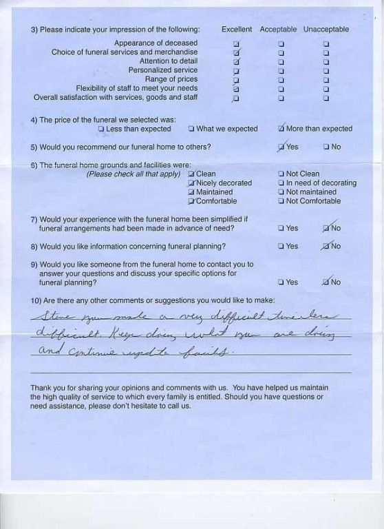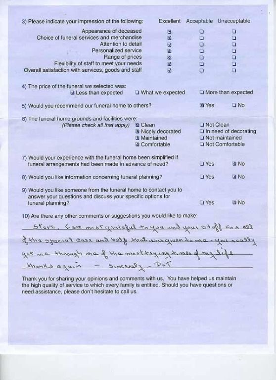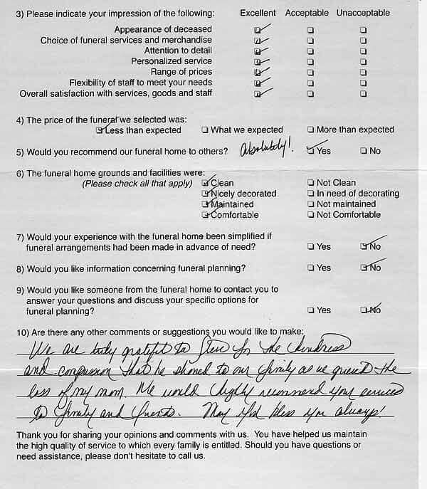 If we have served your family and you would like to share your thoughts, please write your own testimonial.